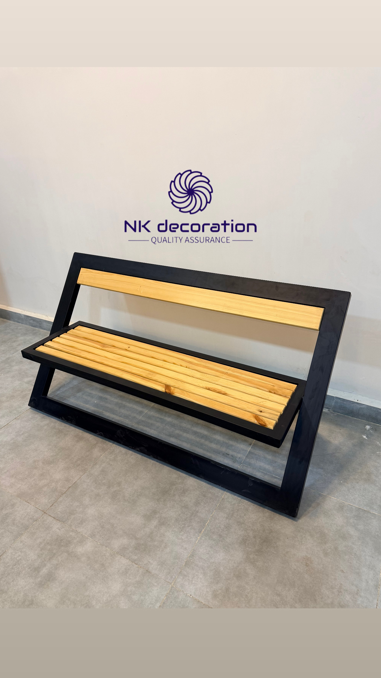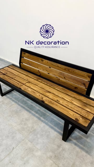 نیمکت فلزی مشکی با چوب طبیعی