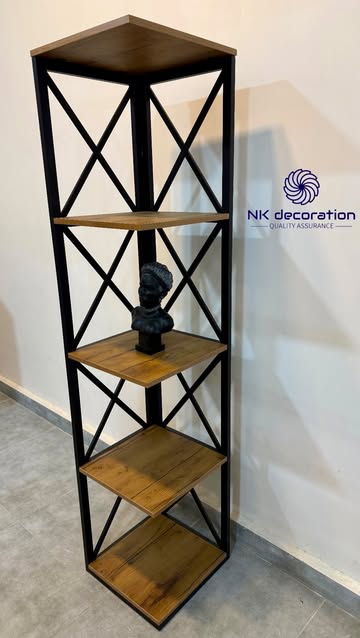 کتابخونه چوب طبیعی و فلز مشکی
