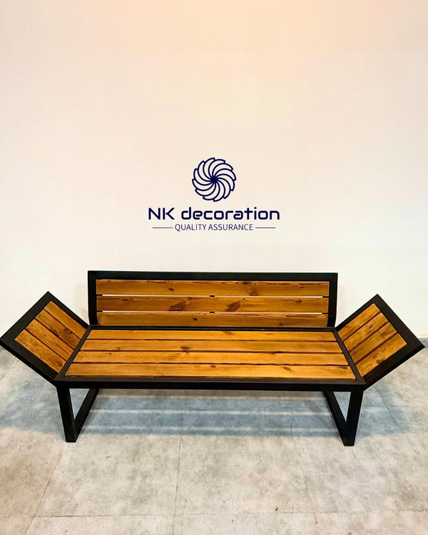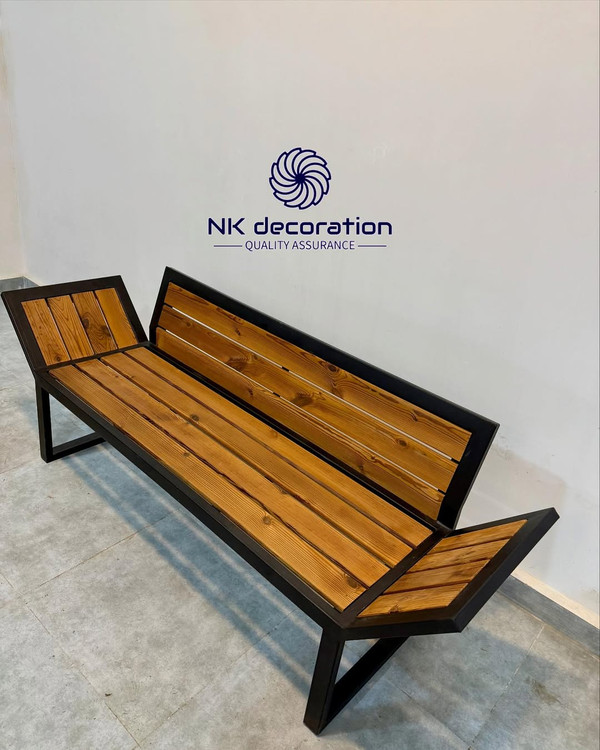 نیمکتی از دل طبیعت، با تلفیق فلز و چوب با طراحی خاص دستهها برای راحتی و زیبایی بیشتر مناسب فضاهای مدرن، صنعتی و کلاسیک کیفیت، زیبایی و دوام با NK Decoration.